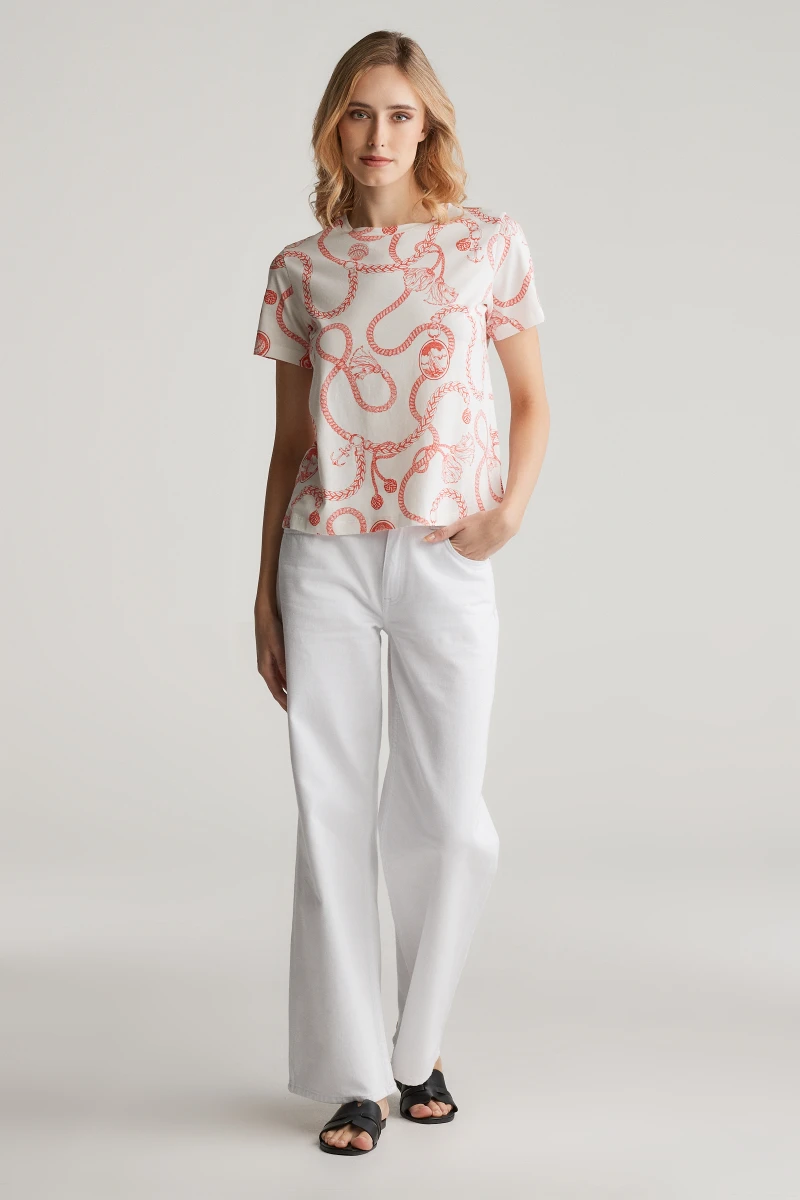 A straight-cut women’s T-shirt with a stunning seasonal print. Featuring a round neckline and short sleeves, the casual design is complemented by a discreet Gant logo embroidered on the left sleeve. The premium, lightweight, cotton knit fabric ensures maximum breathability, comfort and low maintenance. A very practical yet stylish piece that will complement your casual outfit in style.