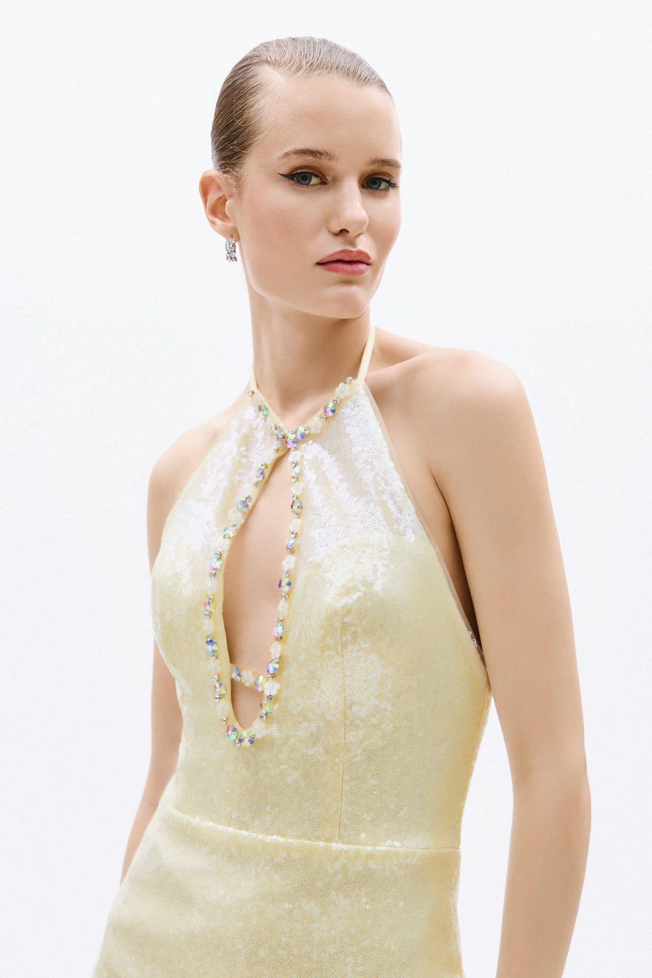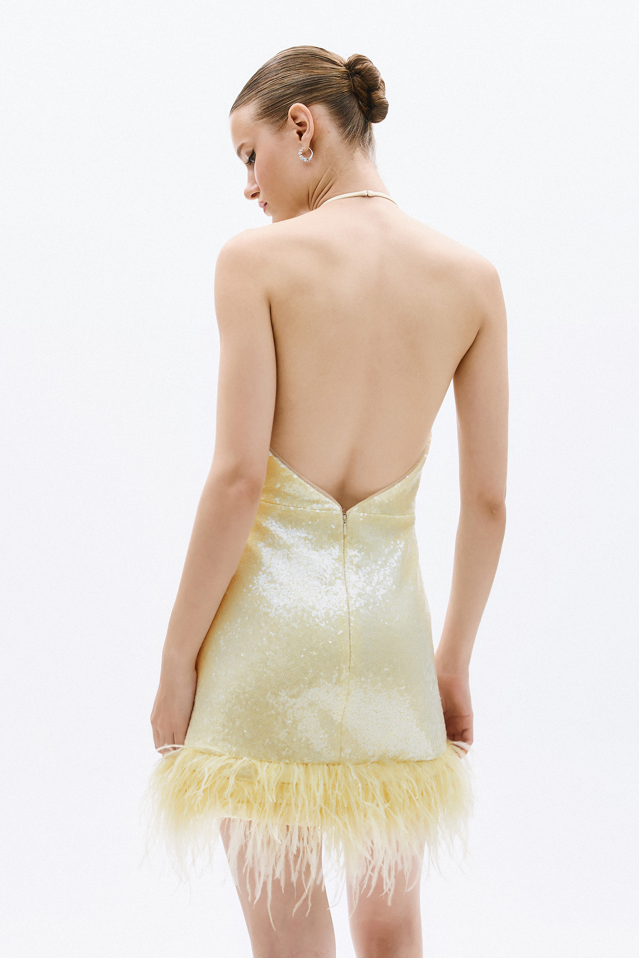 ALLURE EVENING GLOW SEQUIN MINI DRESS WITH FEATHERS