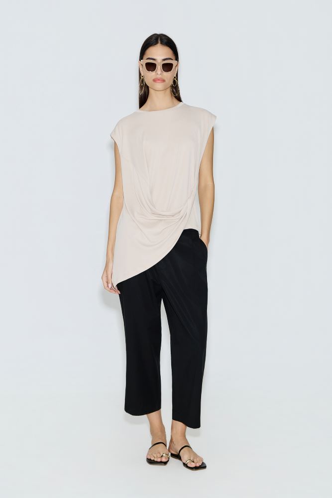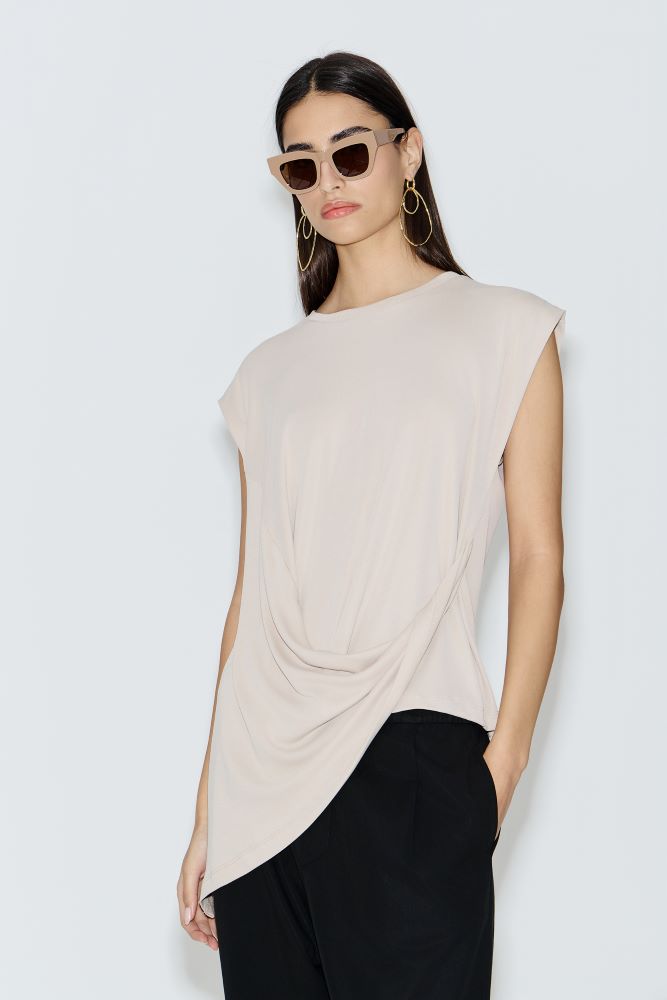 - Avant Garde μοντέρνα και κομψή μπλούζα σε ουδέτερο μπεζ τόνο, ιδανική για κάθε περίσταση. Διαθέτει ασύμμετρο σχεδιασμό με διακριτική σούρα στο μπροστινό μέρος που χαρίζει μοναδικό στυλ και κίνηση στο σύνολο. Η χαλαρή της γραμμή αγκαλιάζει το σώμα, προσφέροντας άνεση και κομψότητα όλη μέρα.Τα κοντά μανίκια και το minimal design την καθιστούν εύκολη στο συνδυασμό, είτε με παντελόνια για ένα chic καθημερινό look είτε με πιο επίσημα κομμάτια για βραδινές εμφανίσεις. Ένα must-have κομμάτι που δεν πρέπει να λείπει από καμία γκαρνταρόμπα.