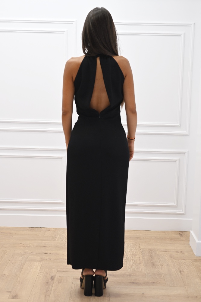 C KONTOVA BLACK HALTER NECK MIDI DRESS