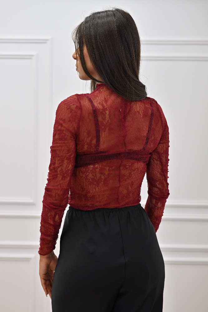 C KONTOVA BORDEAUX LACE RUFFLED BODYSUIT