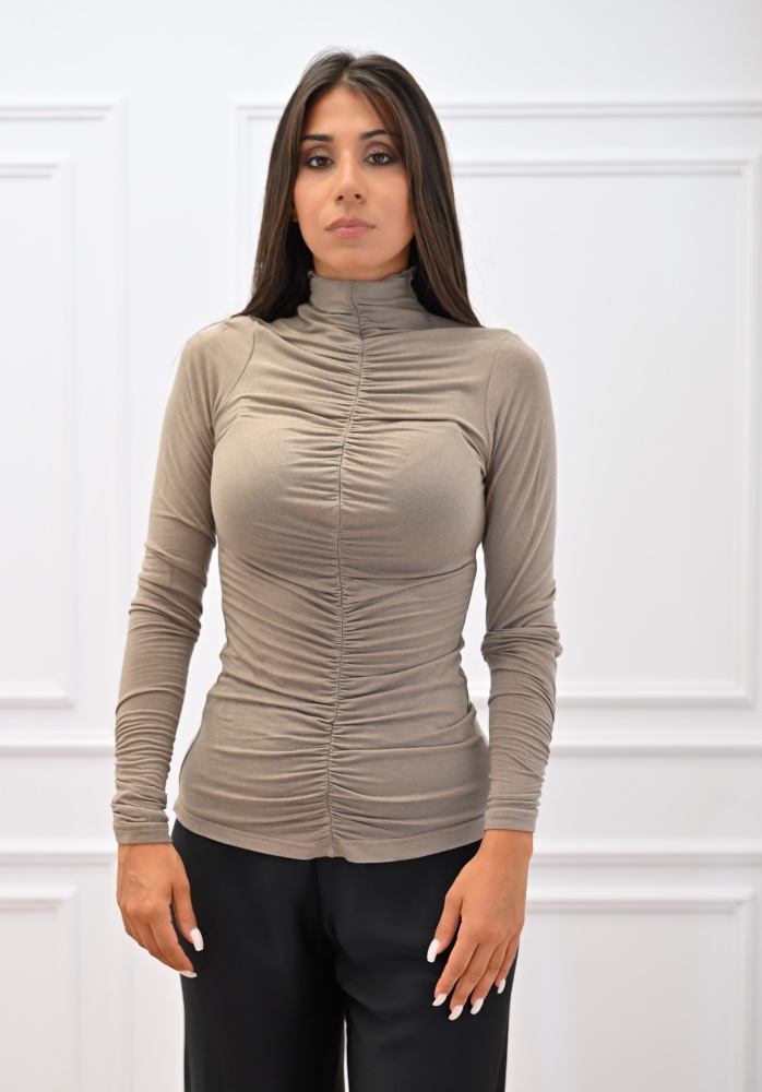 C KONTOVA RUFFLED HIGH NECK TOP BEIGE
