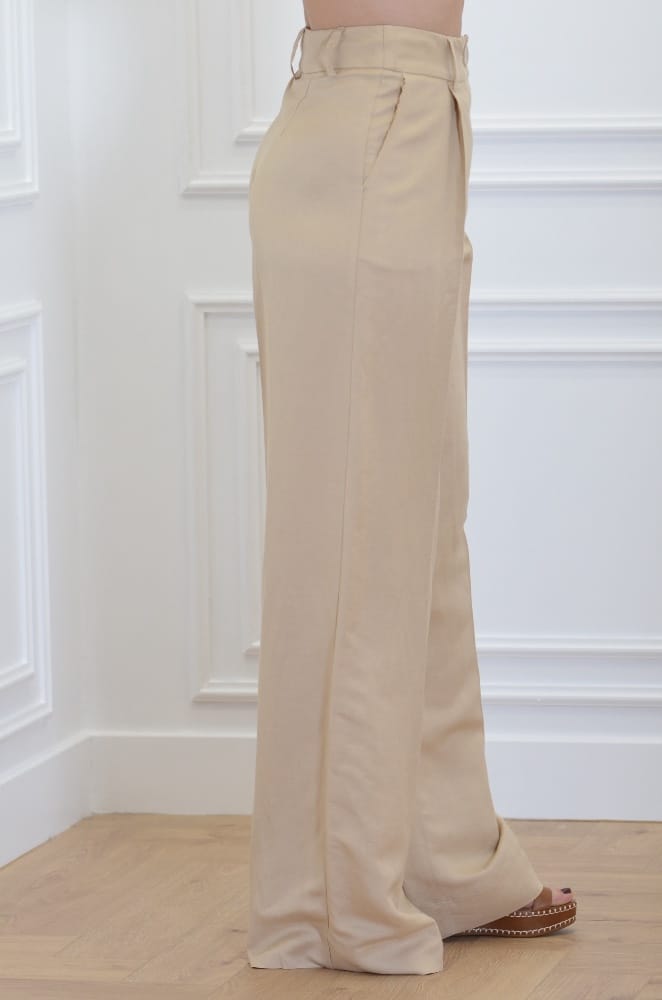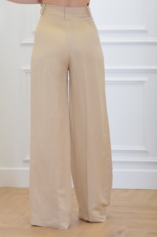 BEIGE FRAYED LINEN PANTS