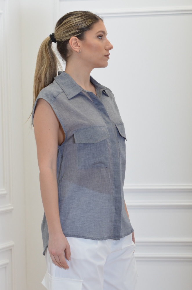 CKONTOVA BLACK SLEEVELESS SHIRT WITH POCKETS