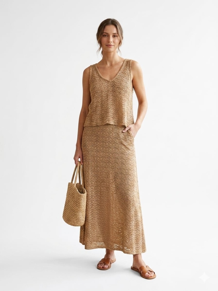 - Ckontova Κομψό και διαχρονικό πλεκτό σετ που συνδυάζει minimal αισθητική με σύγχρονη θηλυκότητα. Το knitted top και η αντίστοιχη φούστα σε μπεζ απόχρωση δημιουργούν ένα αρμονικό total look με απαλή υφή και refined χαρακτήρα.