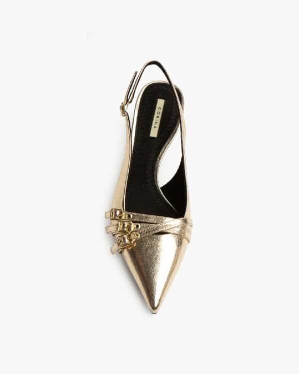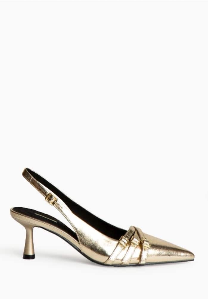 Slingback pumps. Pointed toe. Detail of thin straps with buckles at the front. Back strap with buckle.