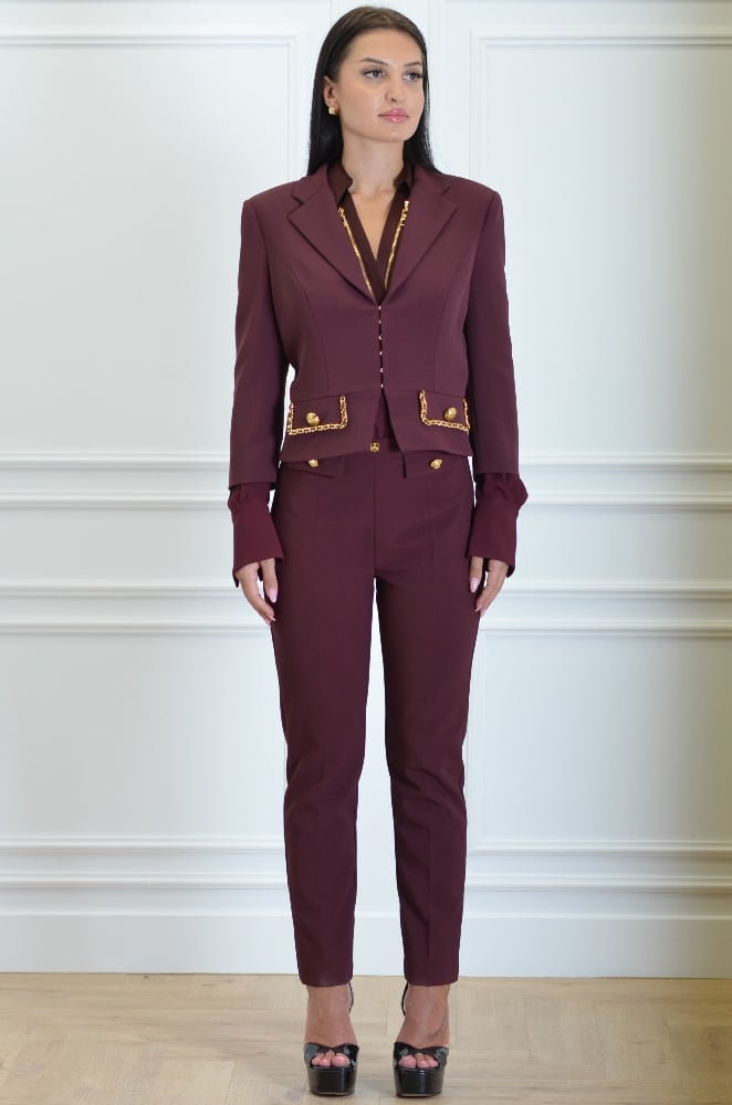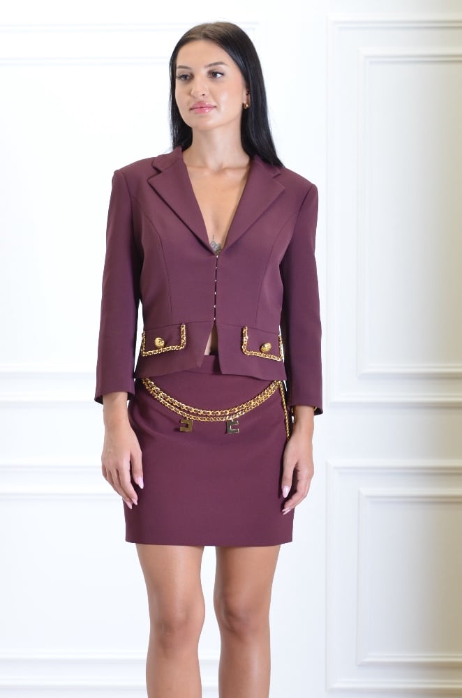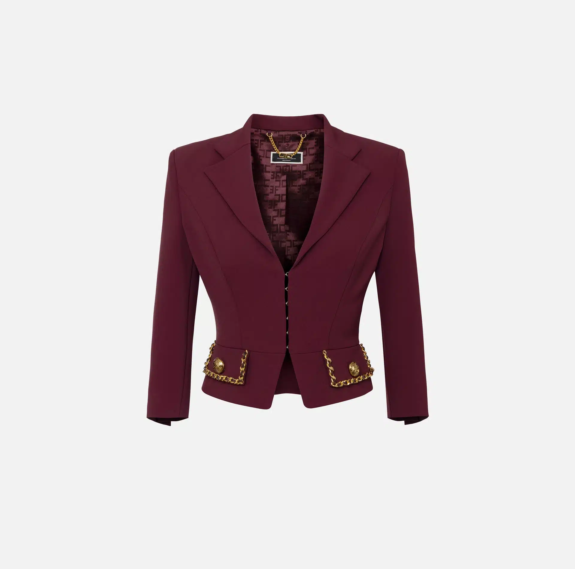 ELISABETTA FRANCHI CROPPED STRETCH CRÊPE JACKET WITH CHAIN