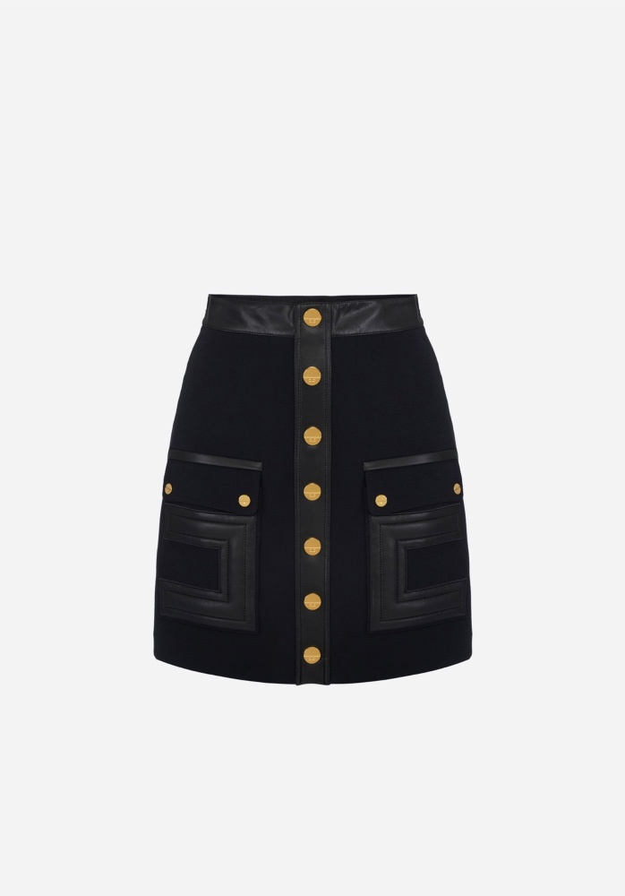 ELISABETTA FRANCHI MINI SKIRT IN DOUBLE LAYER CRÊPE FABRIC WITH LOGO DETAILS