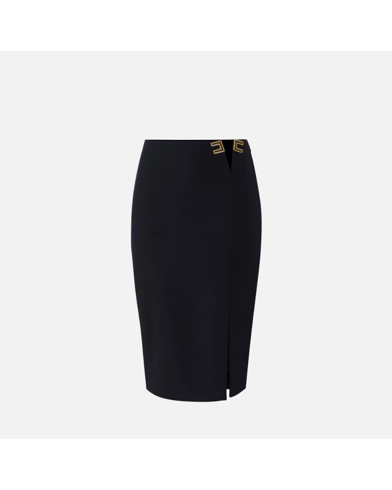 ELISABETTA FRANCHI SKIRT IN DOUBLE LAYER STRETCH CREPE FABRIC WITH LOGO DETAILS BLACK GO14761E2-110