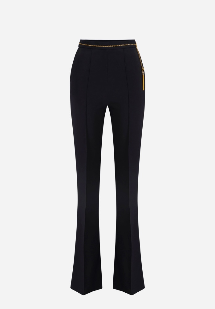 ELISABETTA FRANCHI TROUSERS IN LIGHTWEIGHT CRÊPE FABRIC WITH JEWEL CHAIN