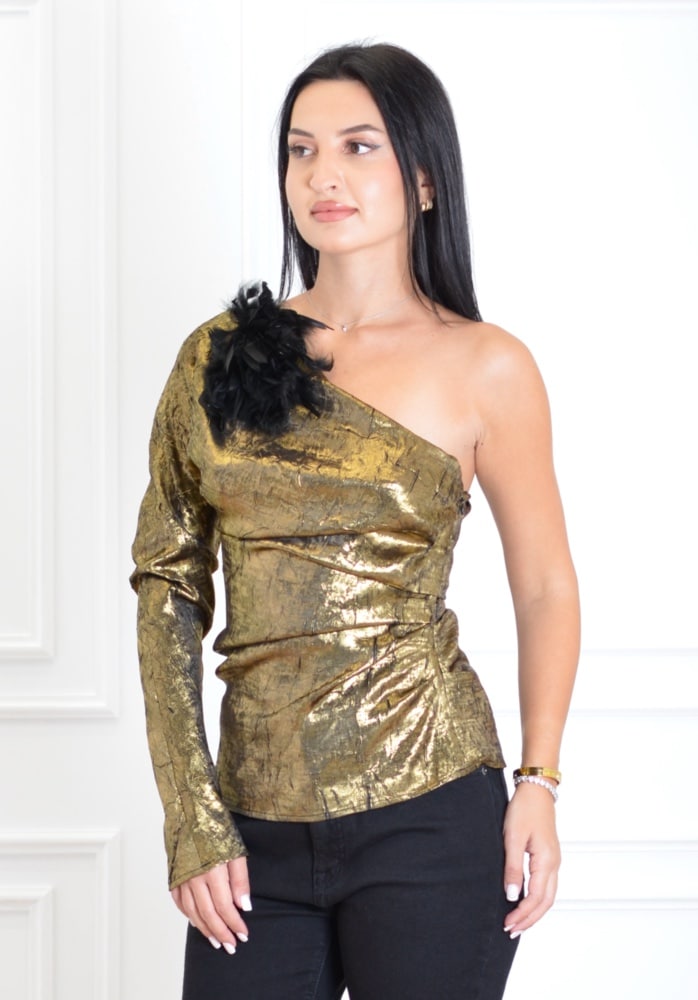 AVANT GARDE ONE SHOULDER FOIL TOP