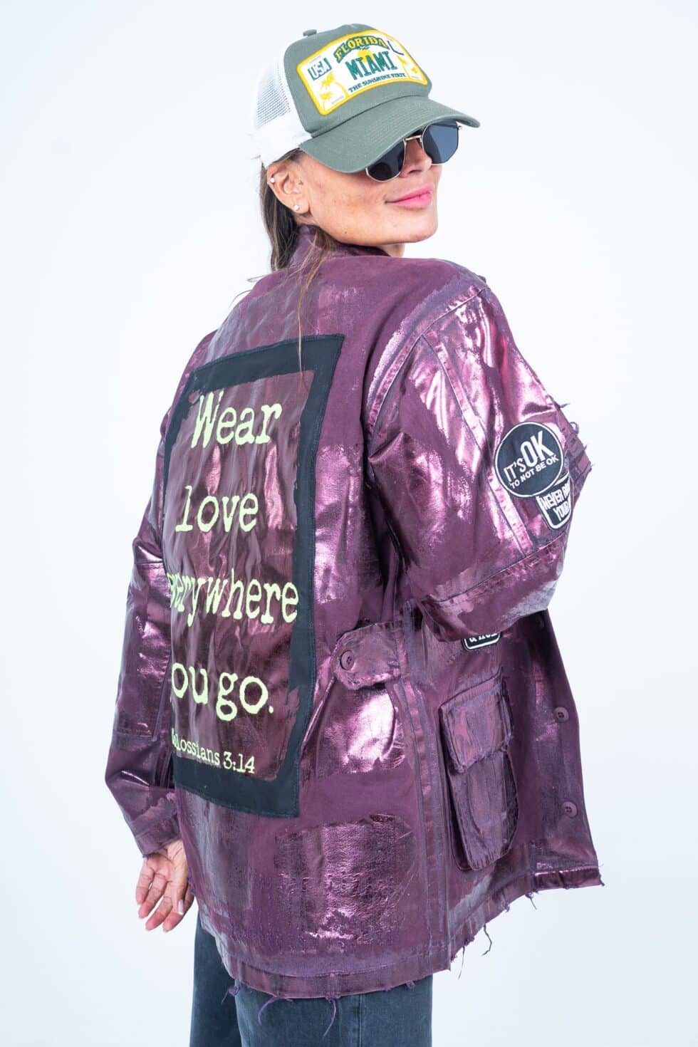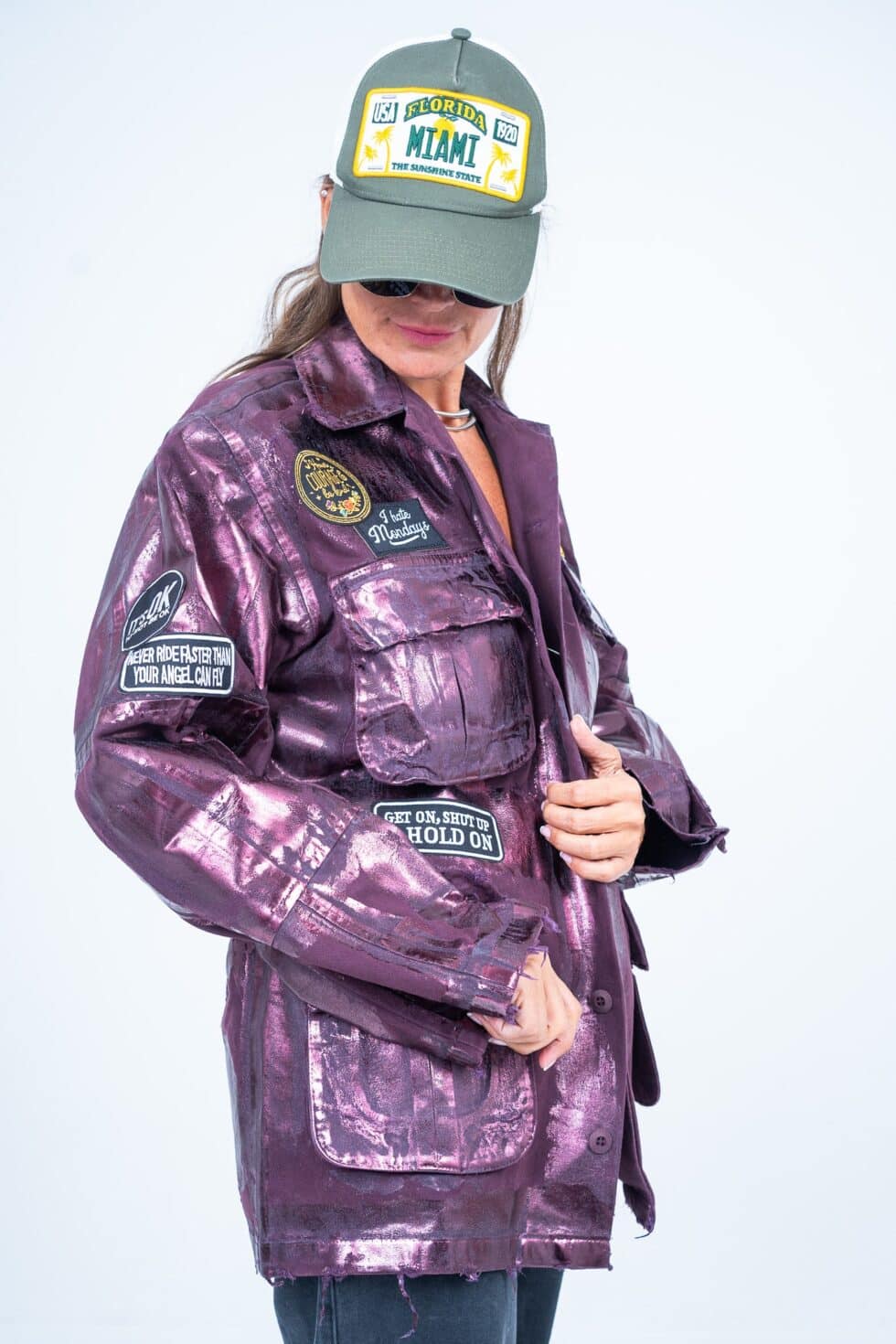 • Oversized military style with lots of authentic army patches