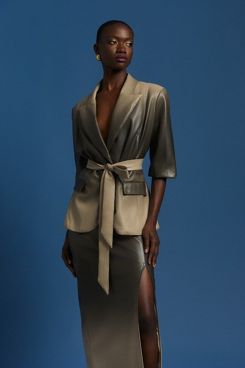 Μακρύ σακάκι από δερματίνη με ζώνη.