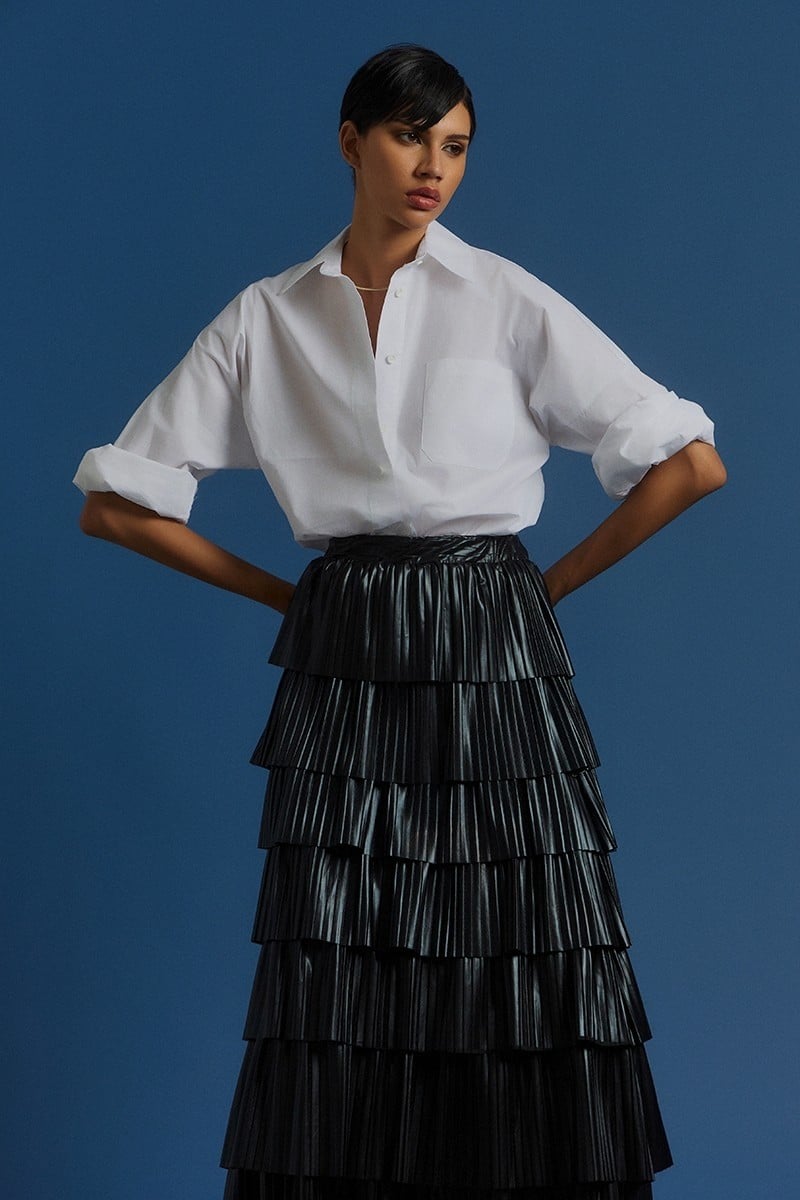 BE YOU RUFFLED FAUX LEATHER SKIRT