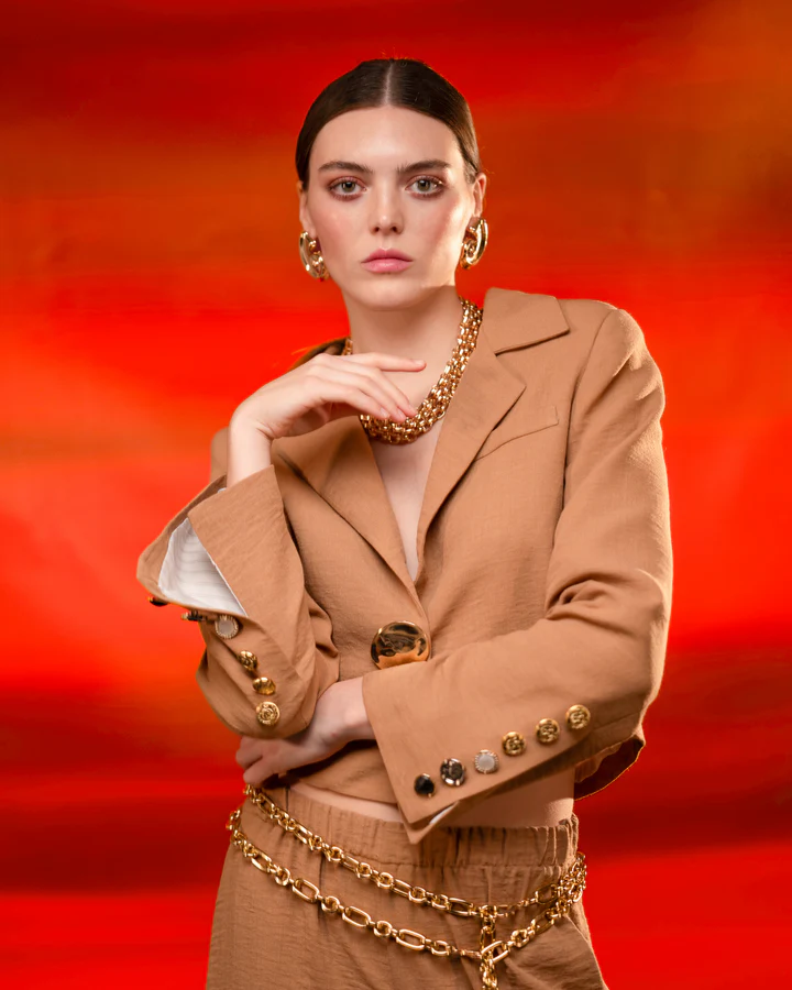 C.MANOLO CROP BLAZER WITH GOLD BUTTONS AND GRACE TROUSERS