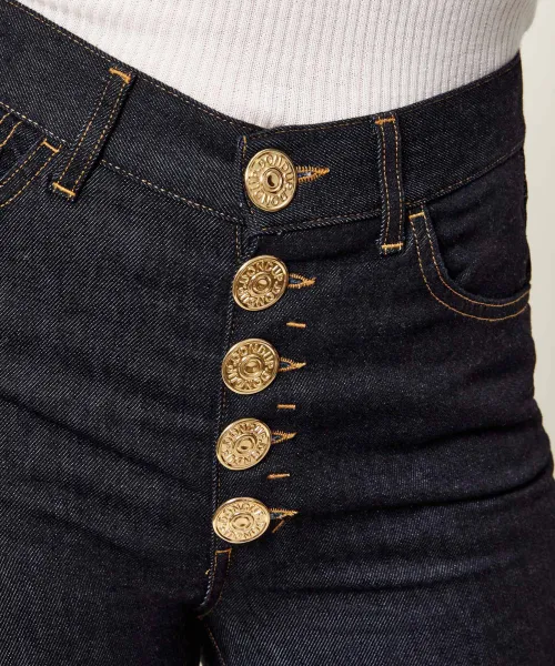 - Dondup τζιν Amber σε φαρδιά γραμμή (wide leg) με πέντε τσέπες και κουμπί κόσμημα, σε μπλε απόχρωση.