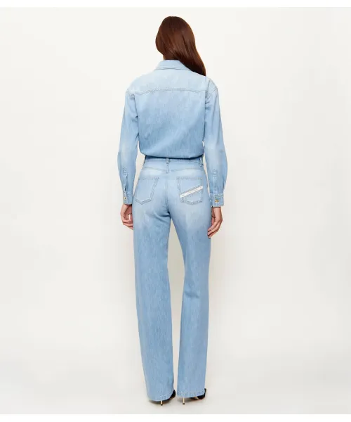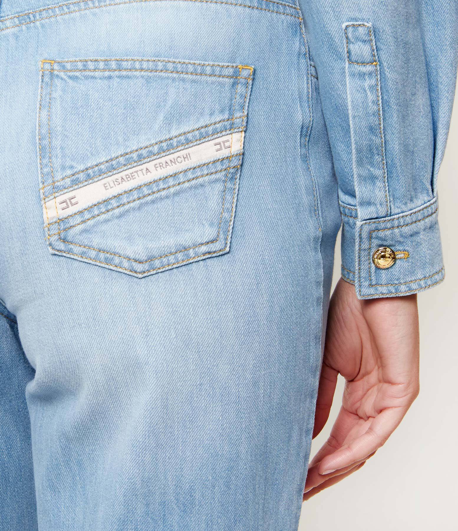 ELISABETTA FRANCHI DENIM JUMPSUIT WITH LETTERING DETAIL