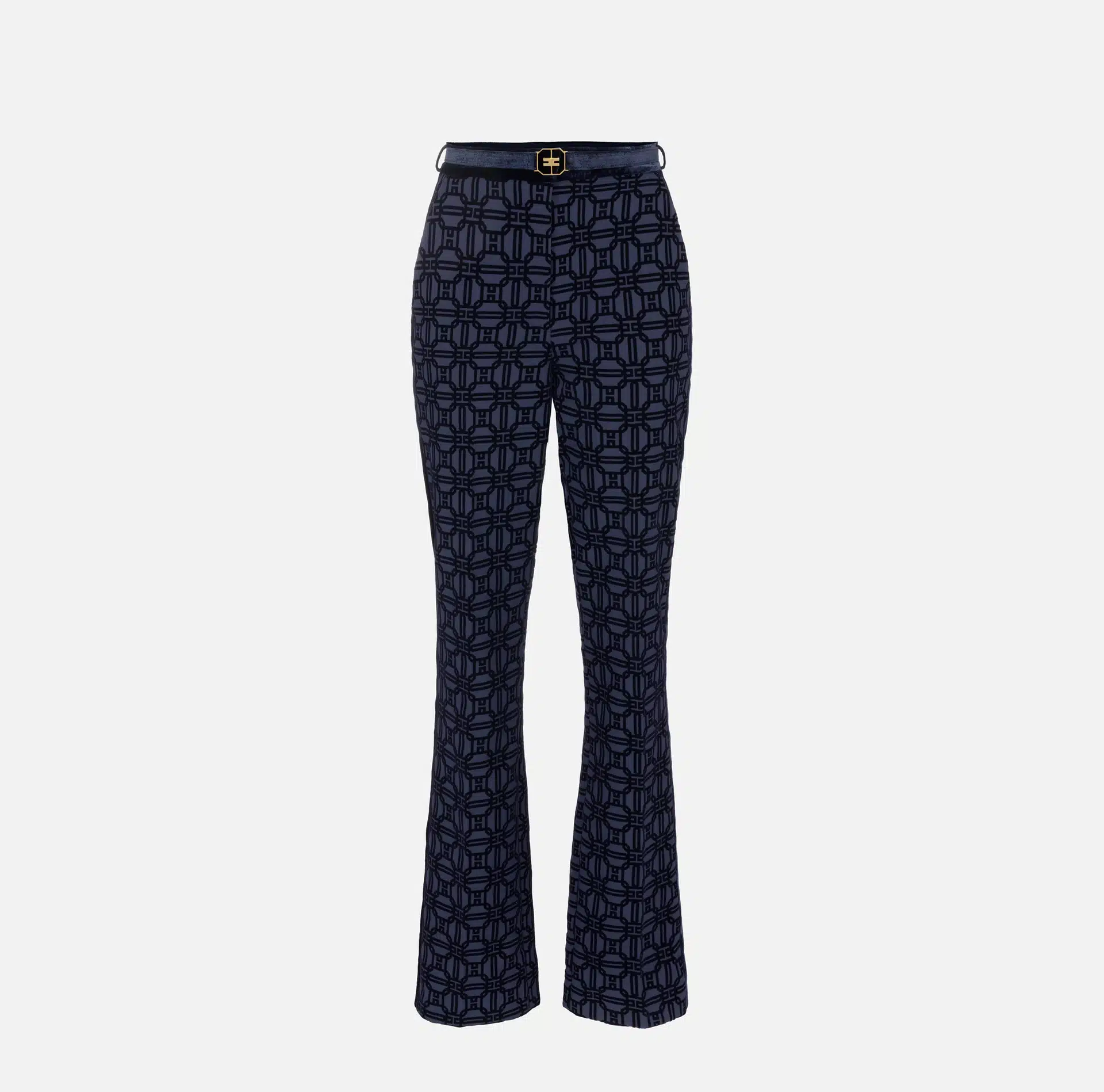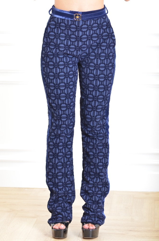 Straight trousers in flock crêpe fabric with belt