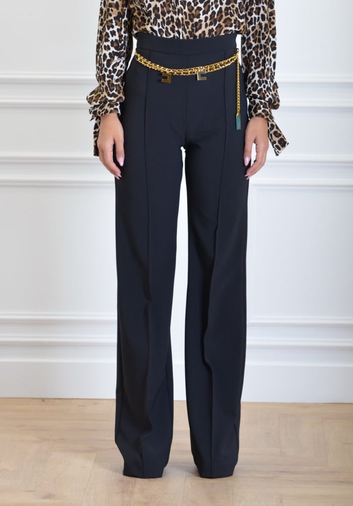 ELISABETTA FRANCHI PALAZZO TROUSERS IN STRETCH CRÊPE FABRIC WITH BELT