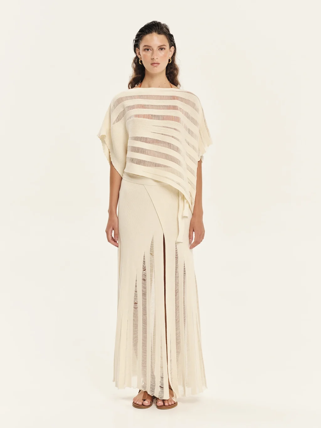 - KOURBELA ECRU OVERSIZED ASYMMETRICAL KNIT TOP