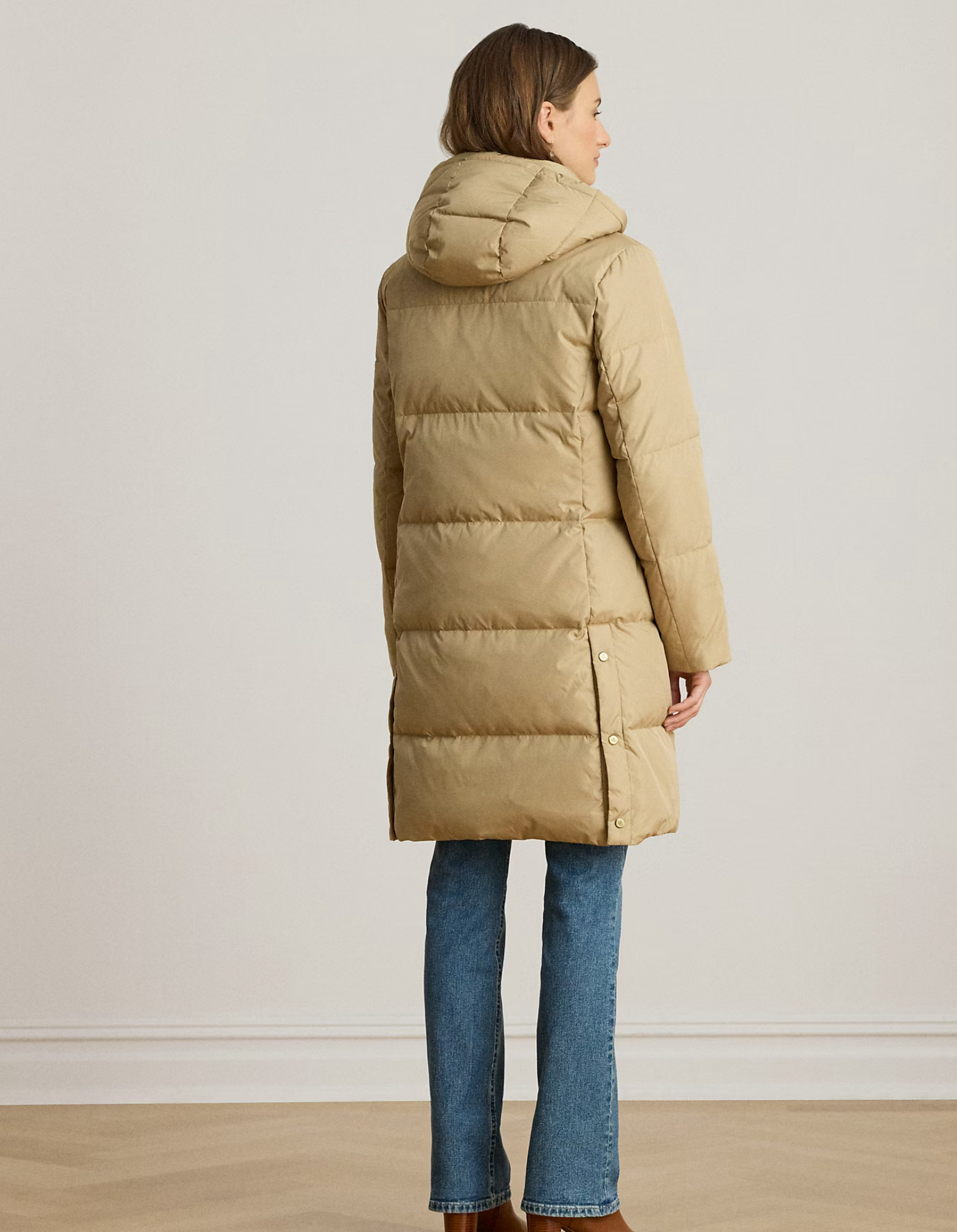 LAUREN RALPH LAUREN CREST PATCH HOODED QUILTED DOWN COAT