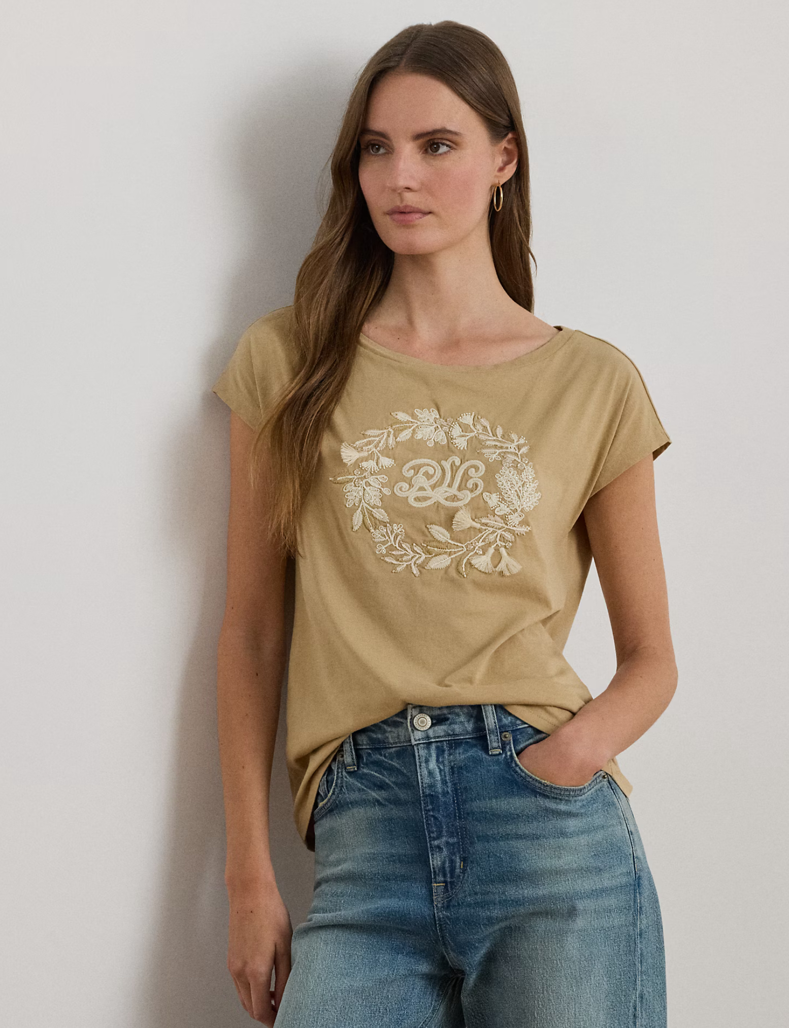 LAUREN RALPH LAUREN EMBROIDERED LOGO COTTON JERSEY TEE