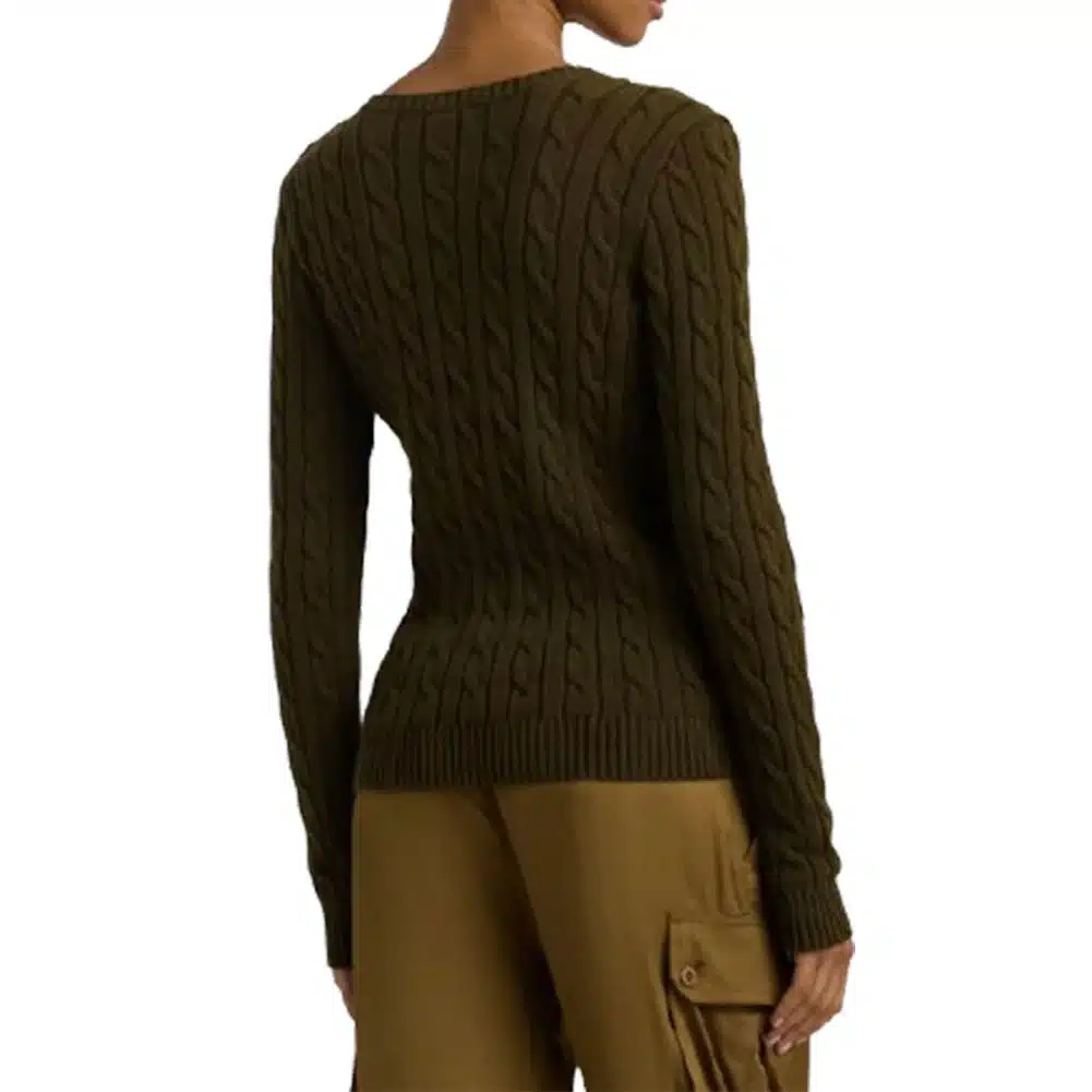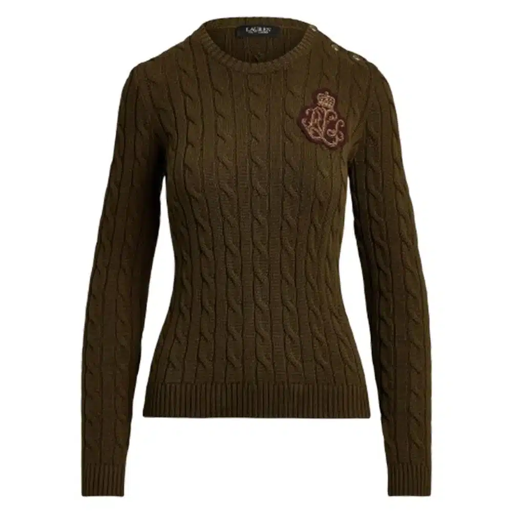 Μακριά μανίκια με rib-knit μανσέτες. Τρία κουμπιά με χαραγμένα «LRL» στον αριστερό ώμο. Κεντημένο λογότυπο «LRL» στο αριστερό στήθος. Πλεκτό στρίφωμα.