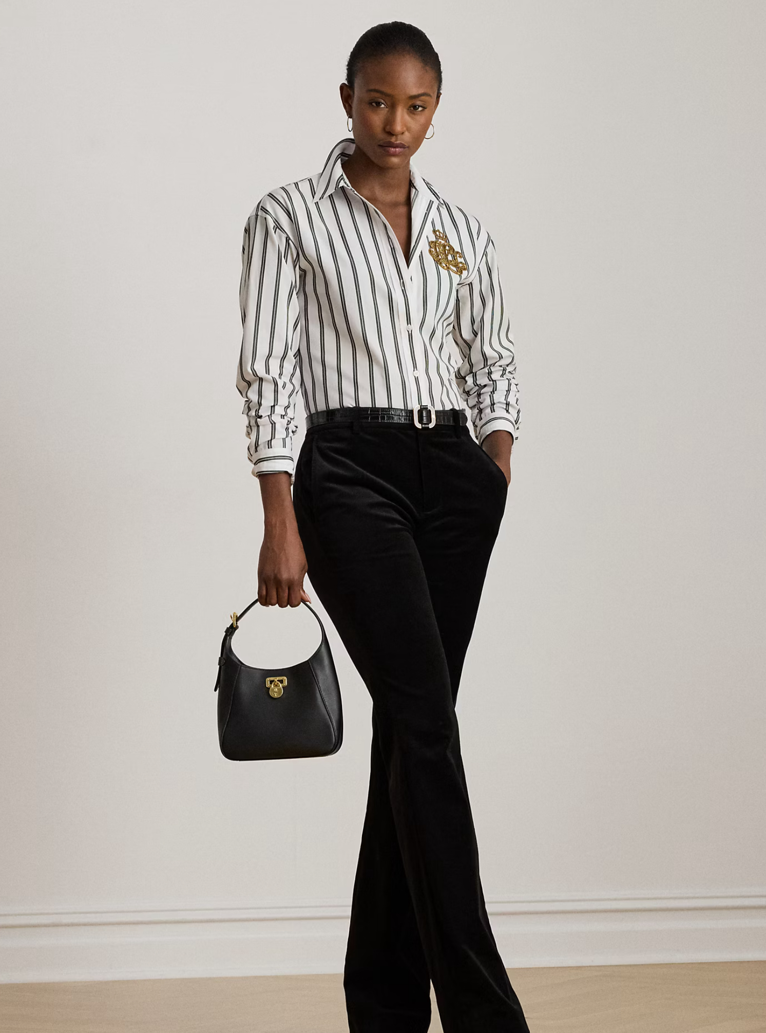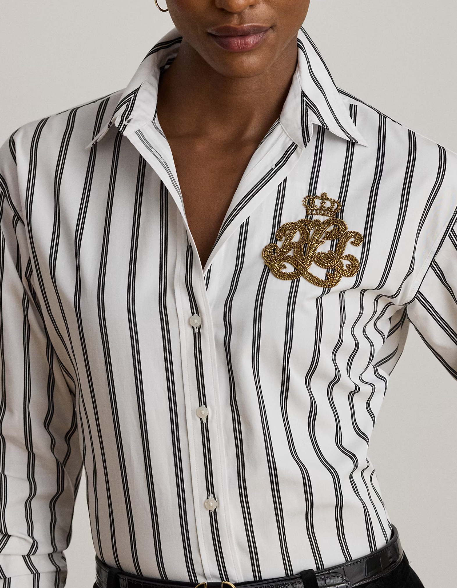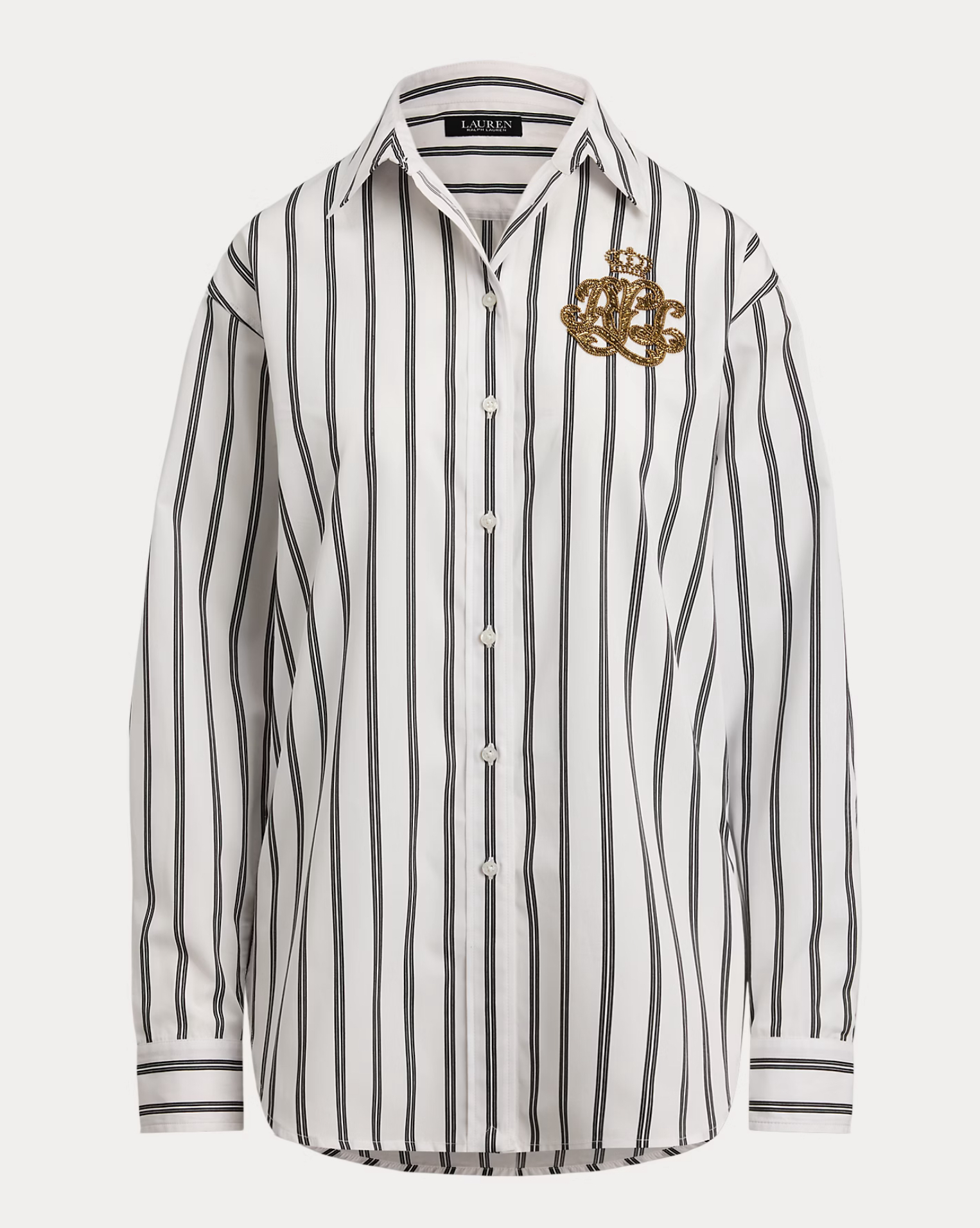 - Point collar. Buttoned placket. Buttons custom-developed with a “Lauren Ralph Lauren” logo.