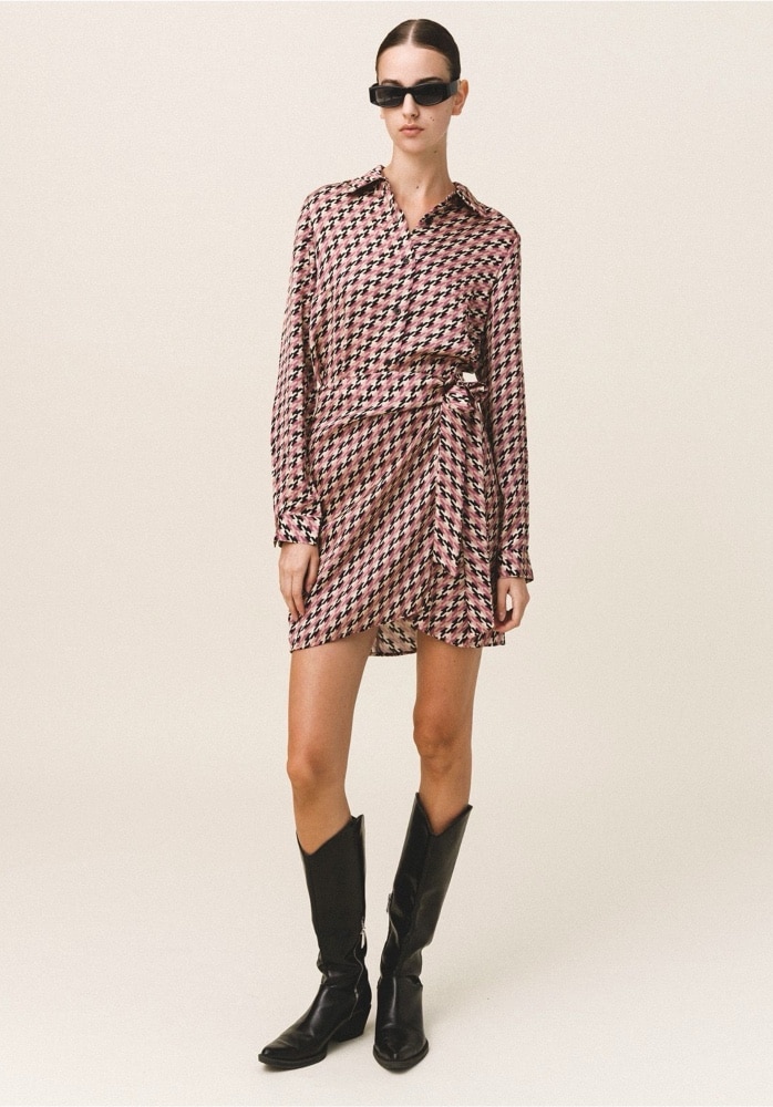 LOVE + ALICIA MAGENTA VISCOSE PRINTED SHIRT