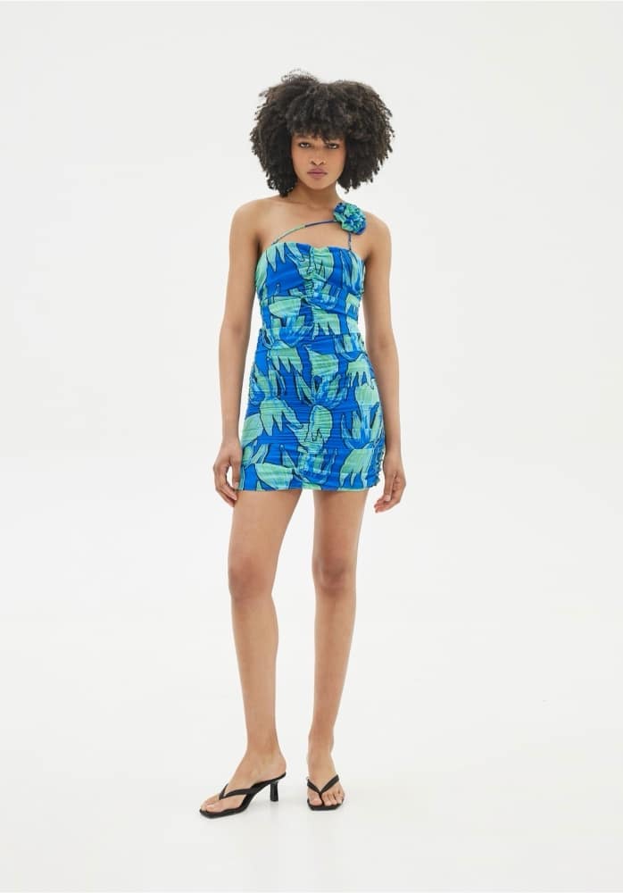 LOVE + ALICIA MALAYA PRINTED SHEER MINI DRESS