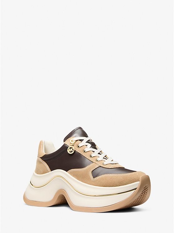 MICHAEL KORS ARLA LEATHER AND SUEDE TRAINER
