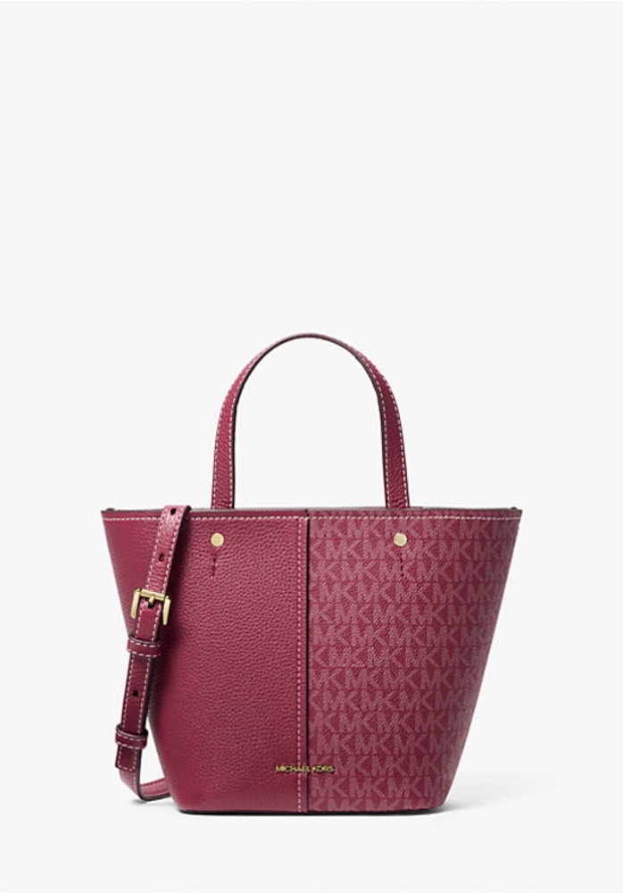 MICHAEL KORS FLORA MEDIUM SIGNATURE LOGO AND PEBBLED LEATHER CROSSBODY BAG