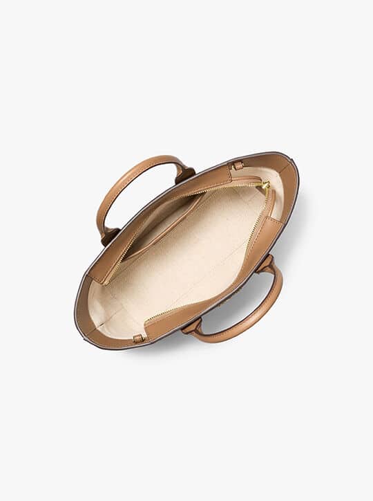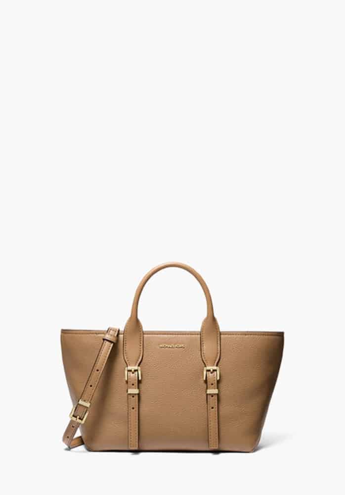 A wide bucket shape and belted details combine to sophisticated effect on our Moore satchel. Crafted from rich pebbled leather, this work-to-weekend style offers ultimate convenience with an open interior and a detachable crossbody strap for hands-free wear.