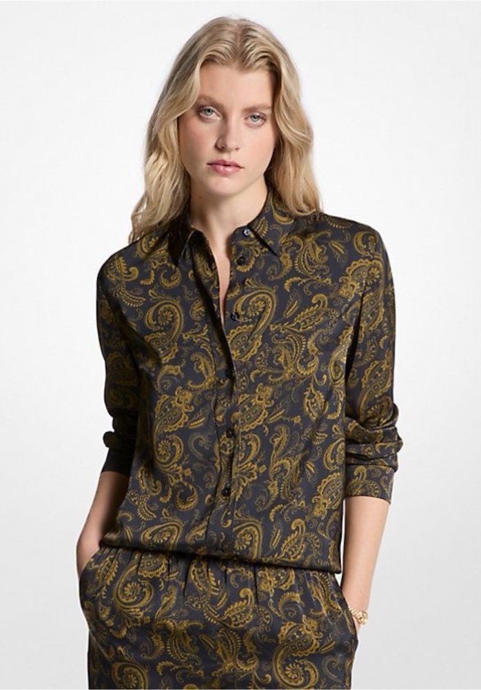 MICHAEL KORS PAISLEY PRINT SATIN PAJAMA SHIRT