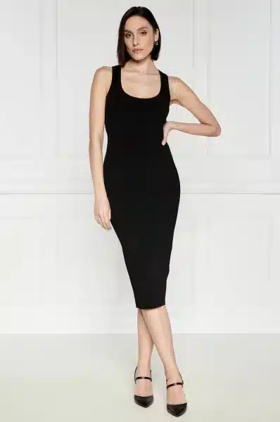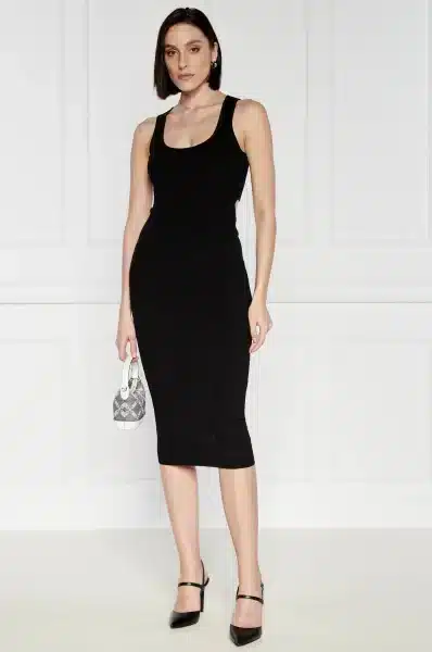 • Dress • Stretch knit • 72% recycled viscose/16% polyester/10% nylon/2% elastane • Machine wash • Imported • Model is 5’10”/178 cm wearing size XS