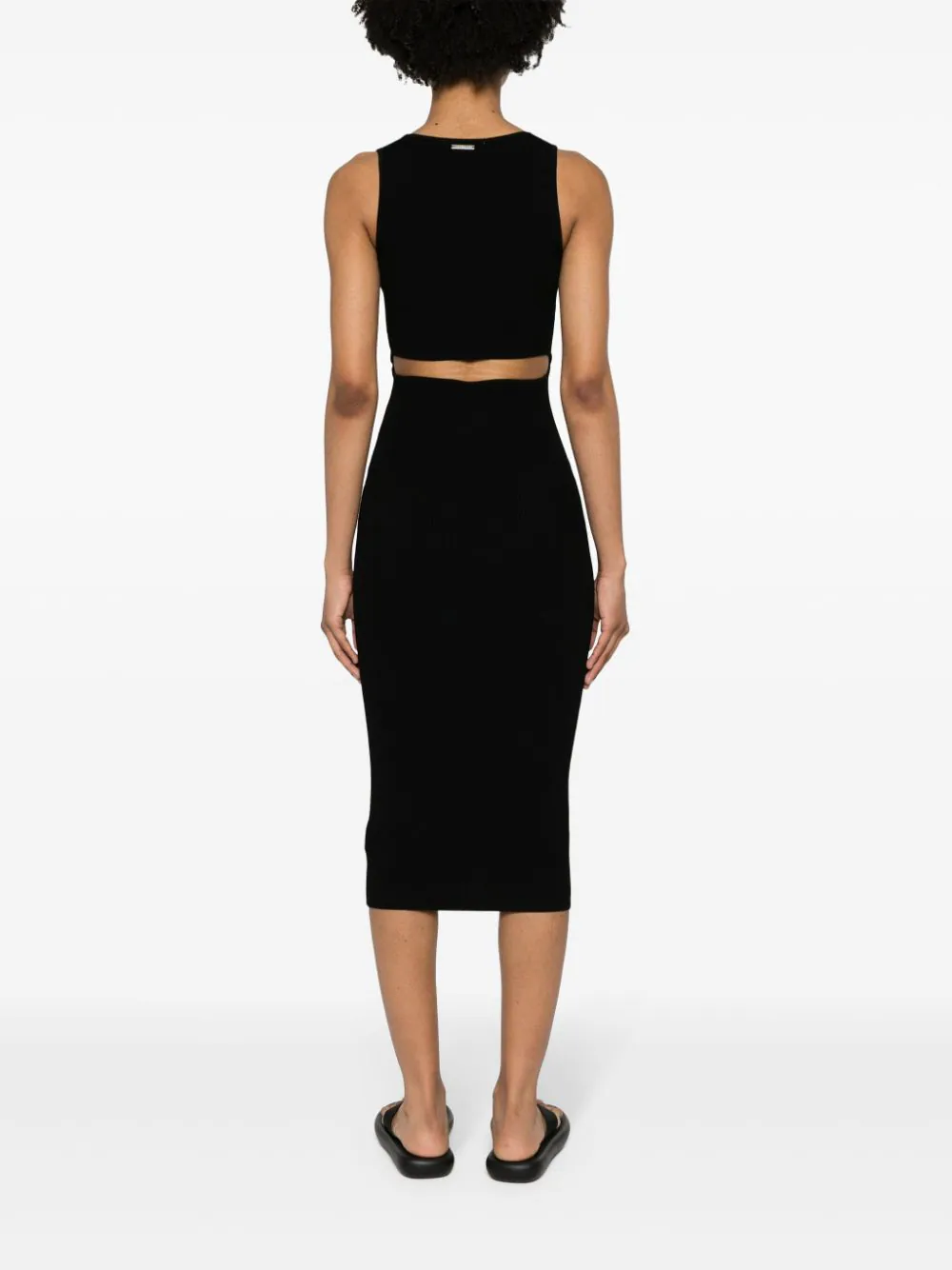 MICHAEL KORS RIBBED STRETCH KNIT CUTOUT MIDI DRESS