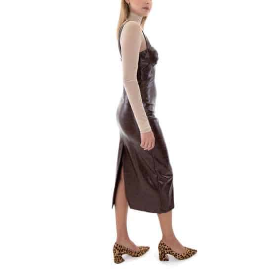 MY T FAUX LEATHER CROCO MIDI DRESS