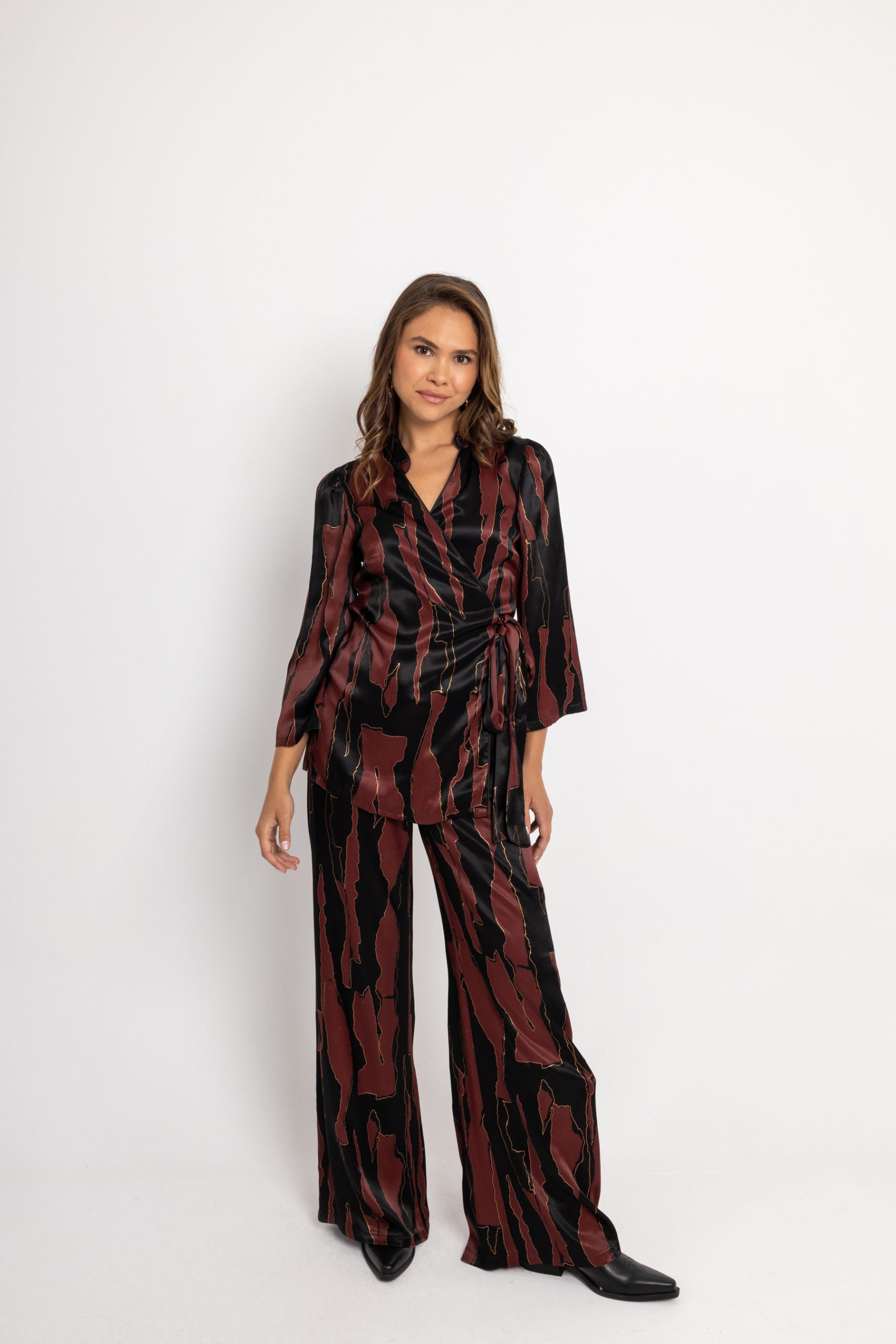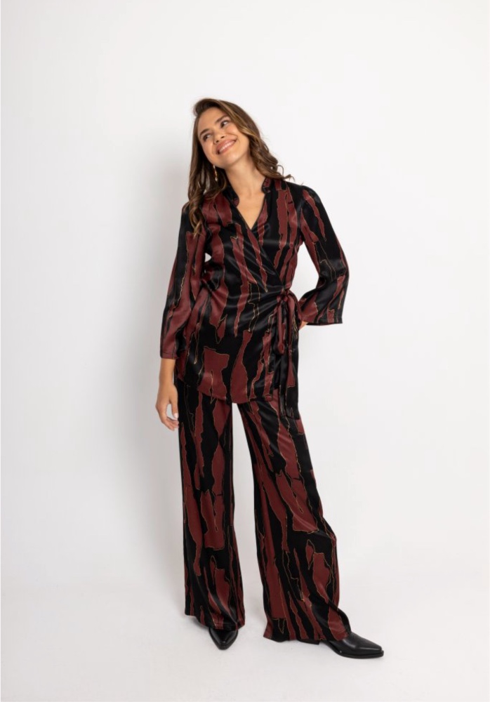 Σετ σε μαύρο χρώμα με μπορντώ και χρυσές λεπτομέρειες.