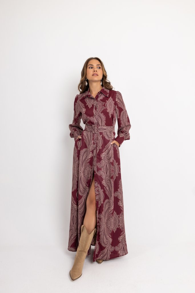 OPEN FASHION PAISLEY PRINTED DRESS WITH BELT