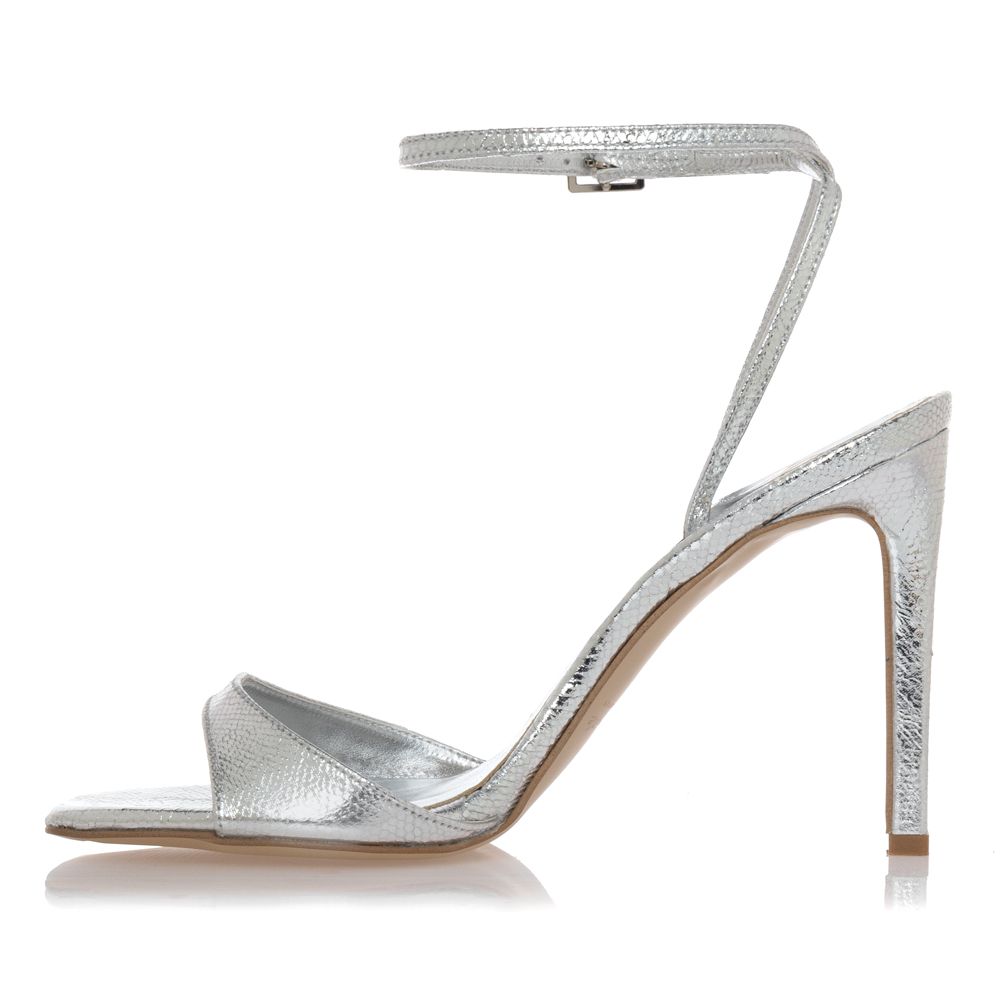 Ύψος τακουνιού 10 εκατοστά. Πατάκι δερμάτινο. Χρώμα ασημί.