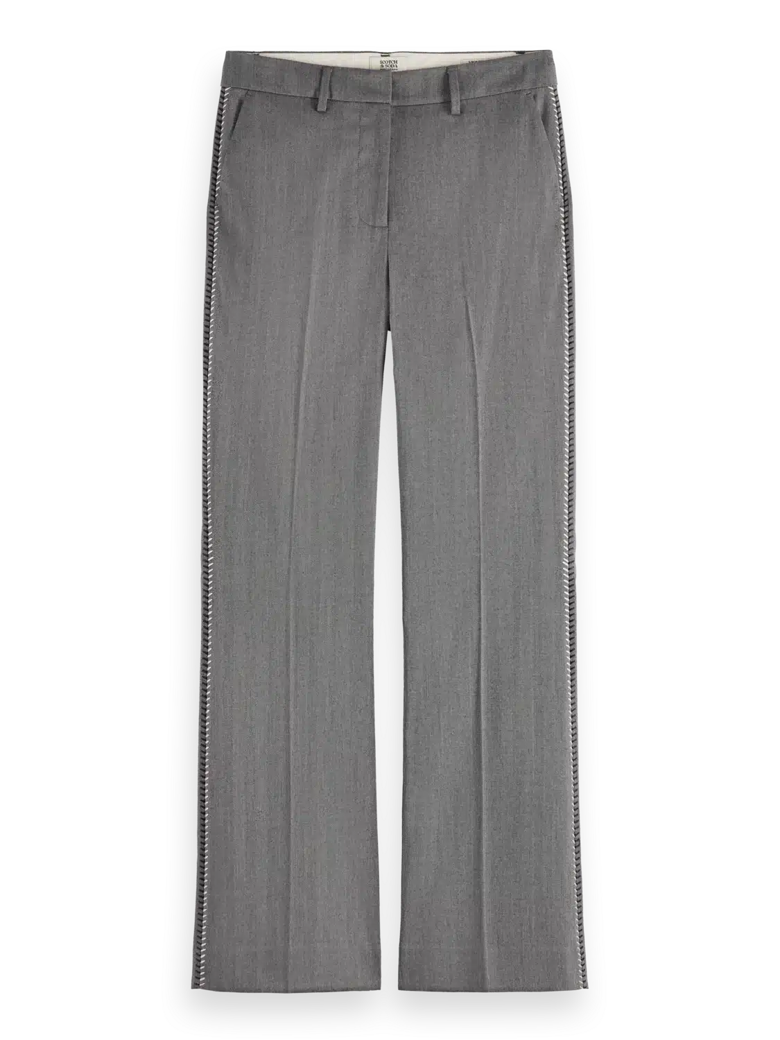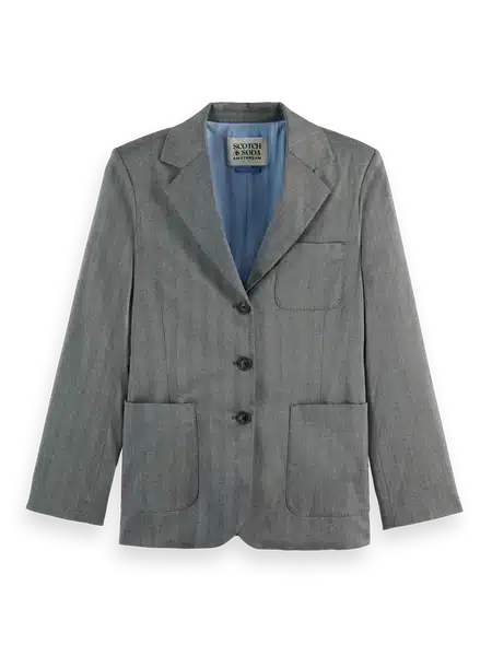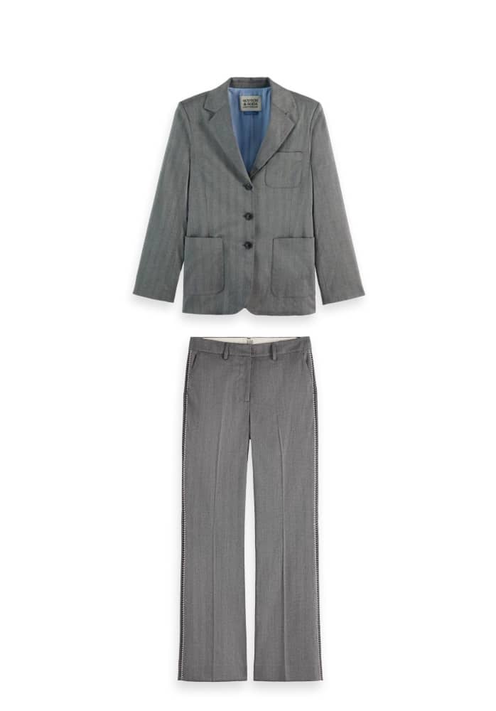 HERRINGBONE SCHOOL BLAZER AND VIOLET HERRINGBONE HIGH RISE FLARE LEG