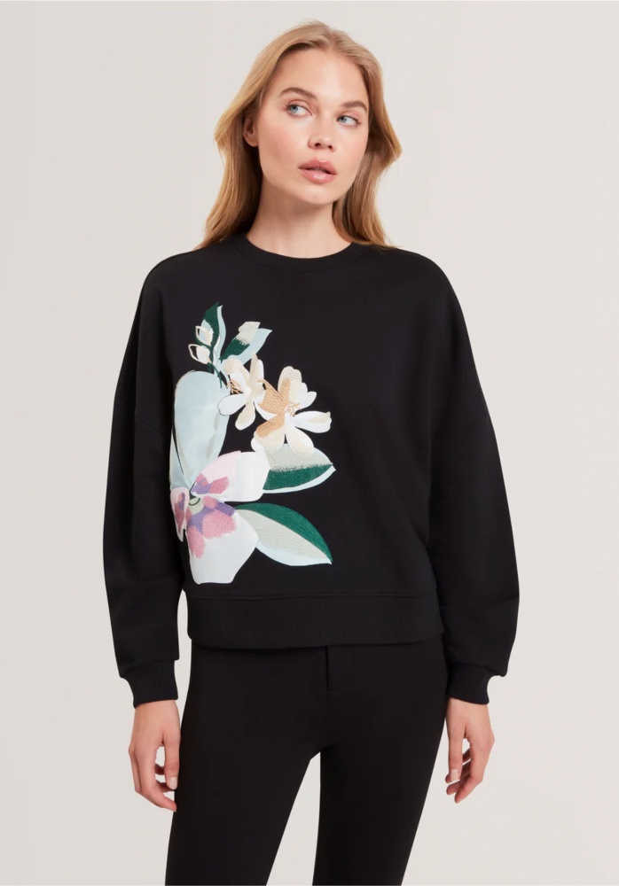 Brookla Printed Embroidered Sweatshirt Black