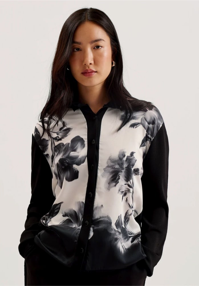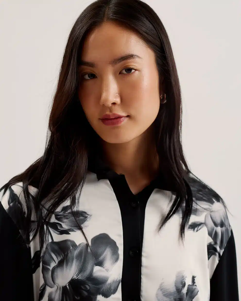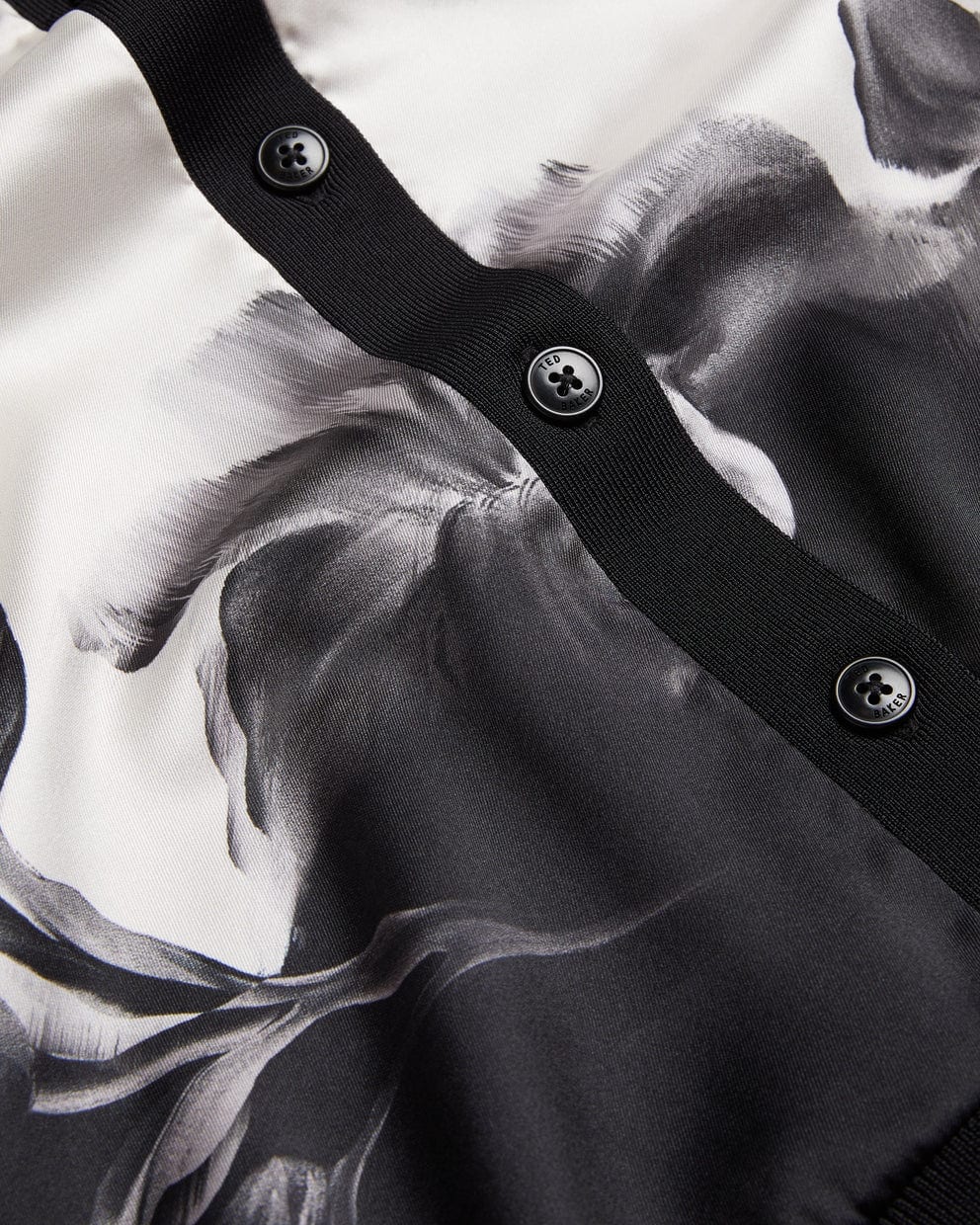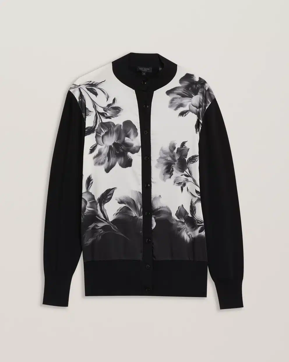 TED BAKER GWEENN PRINTED WOVEN FRONT LONGLINE CARDIGAN