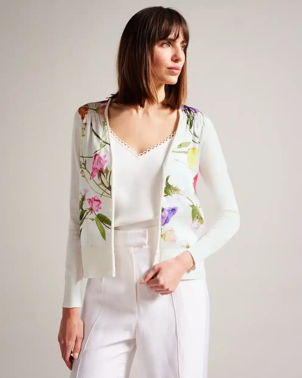 TED BAKER CHANTRI WOVEN FRONT PRINTED CARDIGAN