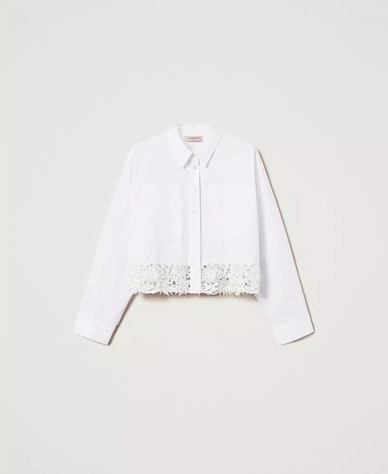 TWINSET BOXY POPLIN SHIRT WITH LACE