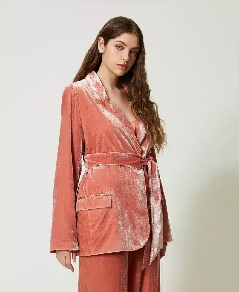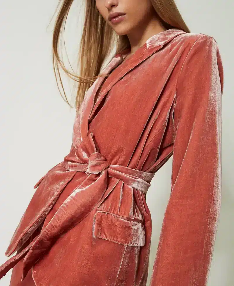 Crushed velvet jacket with belt
