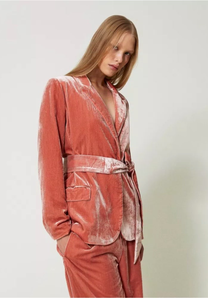 TWINSET CRUSHED VELVET JACKET WITH BELT