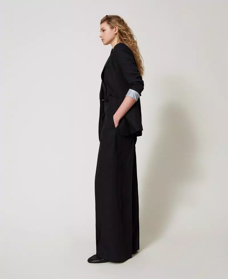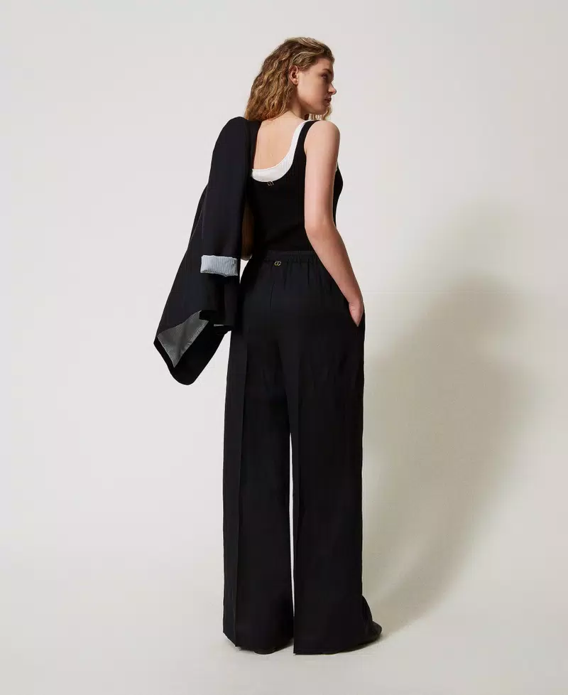 Linen blend palazzo trousers