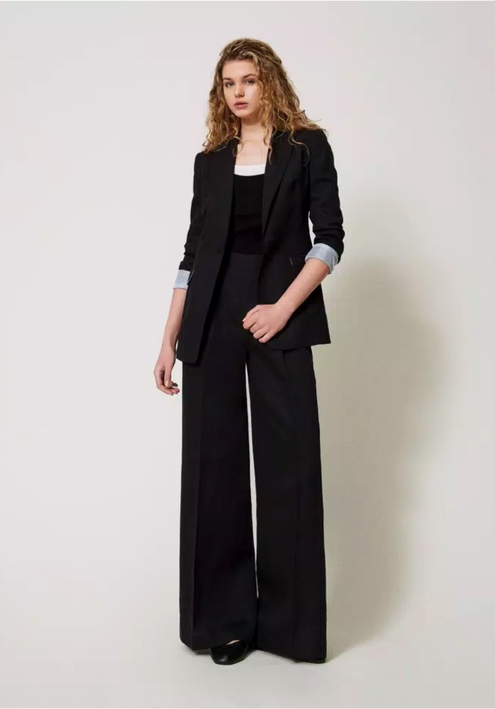 TWINSET LINEN BLEND PALAZZO TROUSERS