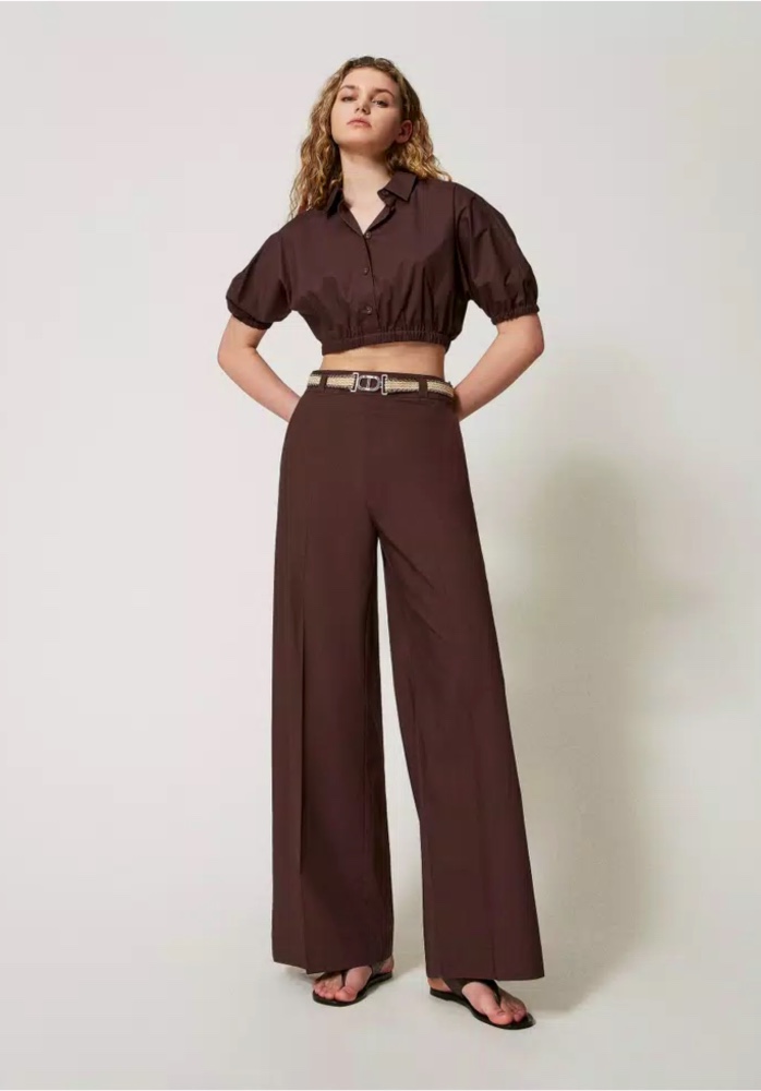 TWINSET PALAZZO TROUSERS IN POPLIN WITH BELT